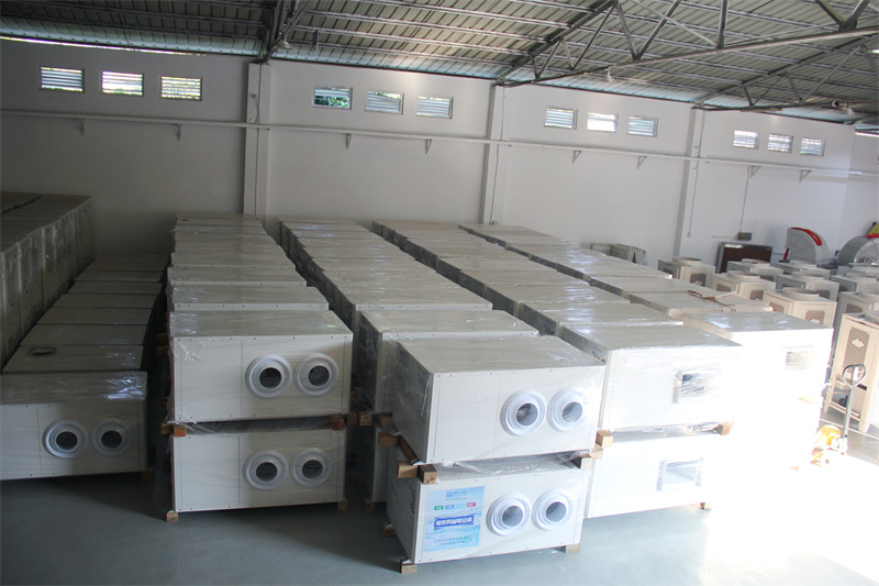 1. 勞動(dòng)密集型車(chē)間如服裝廠、電子廠等,可采用立式機(jī)型進(jìn)行整體降溫,單臺(tái)覆蓋200-300㎡,600m3空間,每小時(shí)耗電僅6度。